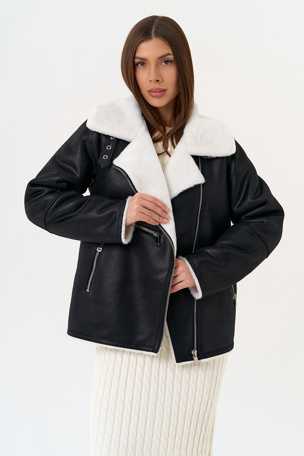 Отделка ворота - эко мех, цвет белый