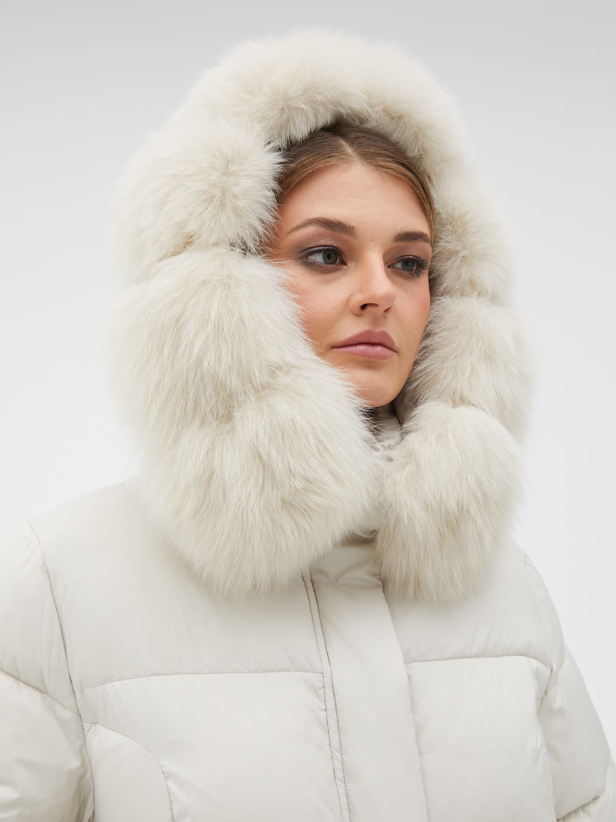 Вид ворота - капюшон, отделка мех песца