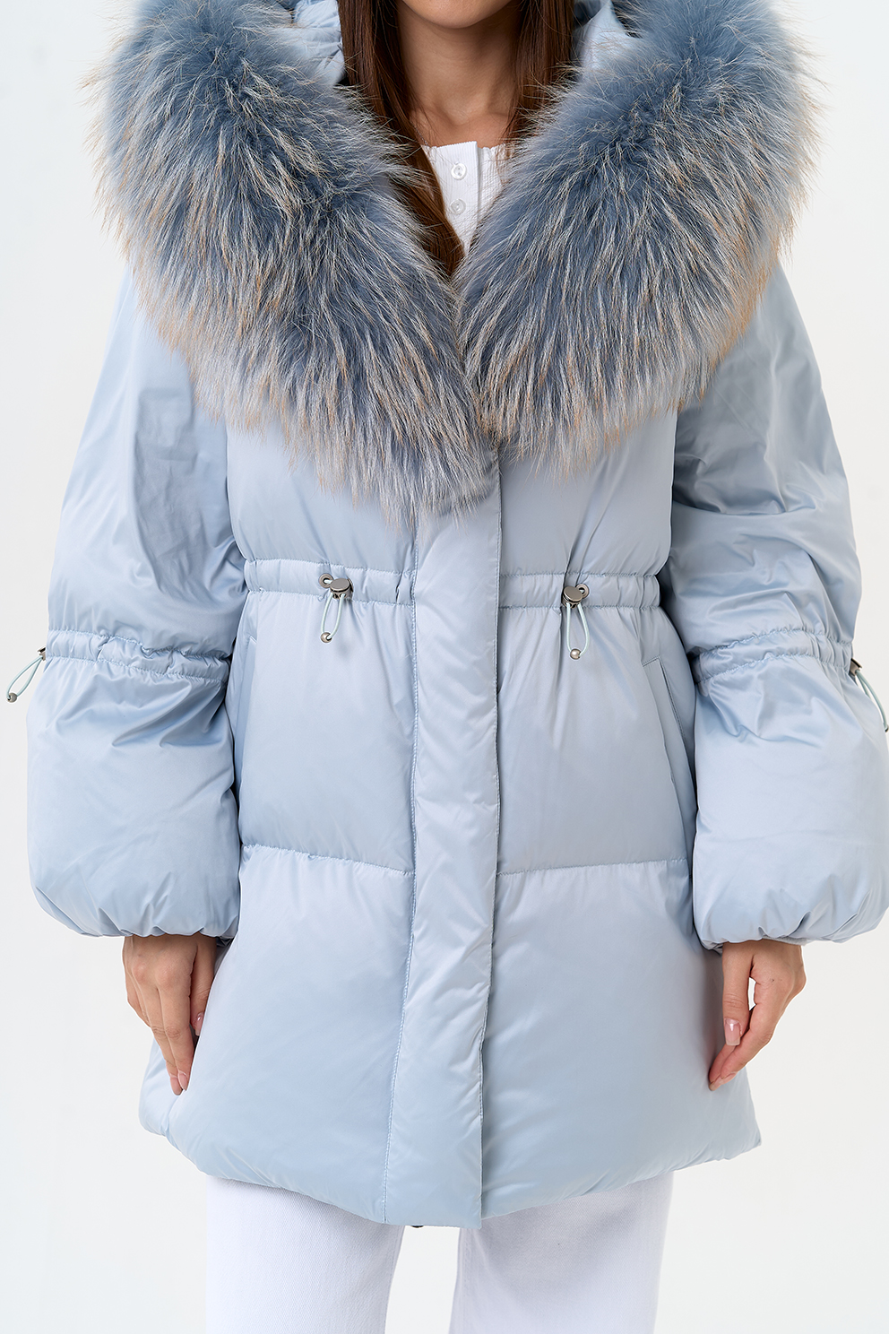 Крой воротника - капюшон, отделка мех лисы