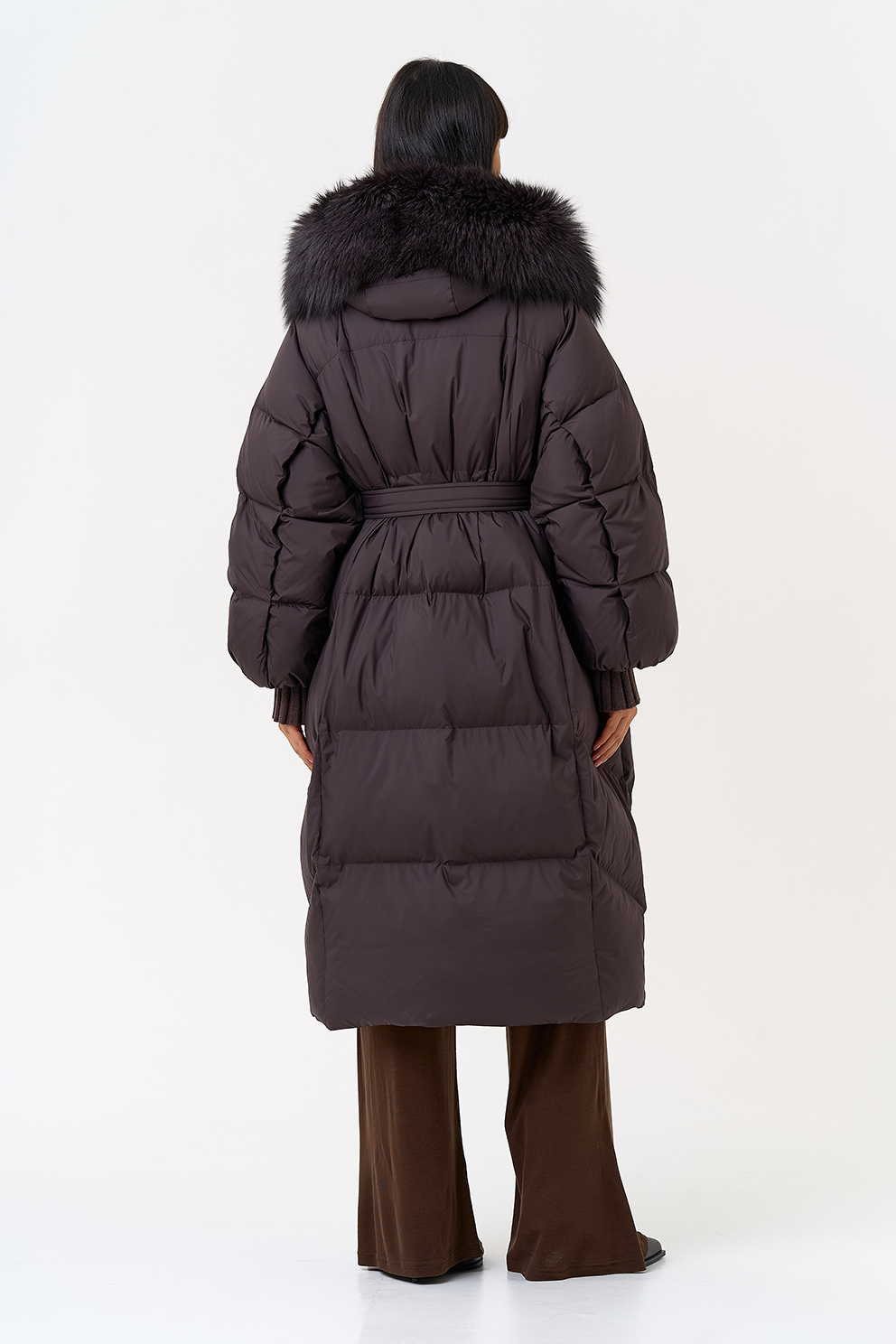 Крой воротника - капюшон, отделка чернобурка